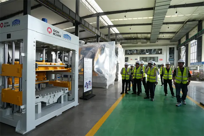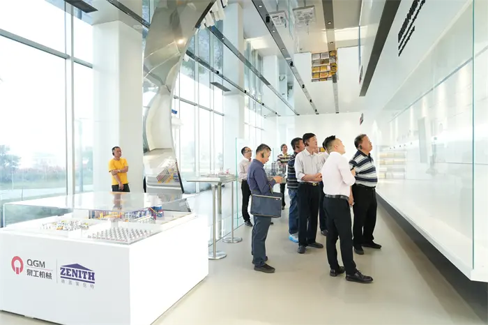 Ina dhiaidh sin, bhog na haíonna go dtí an limistéar taispeána sampla brící agus d'fhéach siad ar brící tréscaoilteacha ard-chaighdeán éagsúla, brící pábhála, bloic agus táirgí eile a tháirgtear le trealamh QGM, agus léirigh siad suim mhór in éachtaí teicneolaíochta "athchúrsáil dramhaíola soladach" na cuideachta. Sa limistéar taispeántais trealaimh déanta brící, rinne an Cathaoirleach Lin Boqian agus a pháirtí iniúchadh dlúth ar an gcroí-threalamh mar an meaisín foirmithe bloc iomlán uathoibríoch agus an líne táirgeachta cliste a d'fhorbair QGM go neamhspleách, agus mhalart siad buntáistí teicniúla agus ionchais iarratais margaidh ar an láthair. Dhearbhaigh an Cathaoirleach Lin Bo go hiomlán ranníocaíochtaí gan íoc QGM i réimsí déantúsaíochta trealaimh ard-deireadh agus ábhar tógála glasa, agus chuir sé béim ar: "Is samhail nuálaíoch fiontair phríobháideacha Quanzhou é QGM. Tá súil againn ról an chónaidhm a imirt mar dhroichead sa todhchaí, forbairt chomhordaithe an tslabhra tionscail a chur chun cinn, agus cabhrú le "Déantúsaíocht Chliste Quanzhou" dul domhanda." D'fhreagair an Leas-Bhainisteoir Ginearálta Fu Huabin go leanfaidh an chuideachta ar aghaidh ag méadú infheistíochta i dtaighde agus forbairt agus ag obair le comhpháirtithe ó gach gné den saol chun deiseanna nua a iniúchadh maidir le forbairt chomhtháite trealaimh chliste agus déantúsaíocht ghlas.