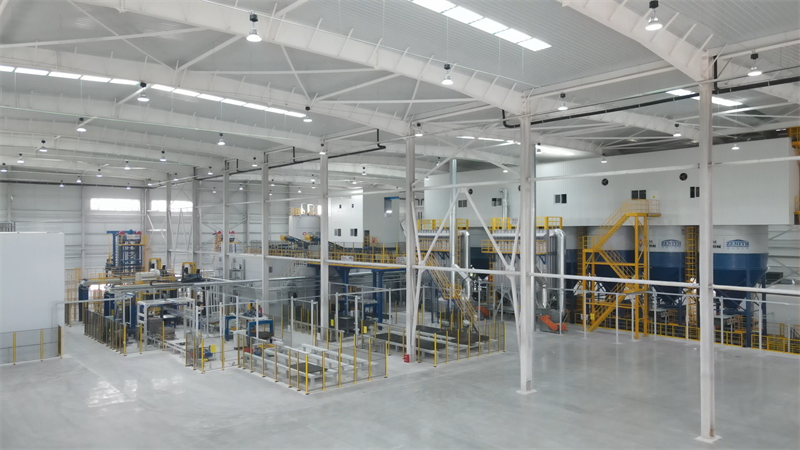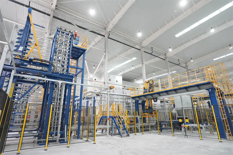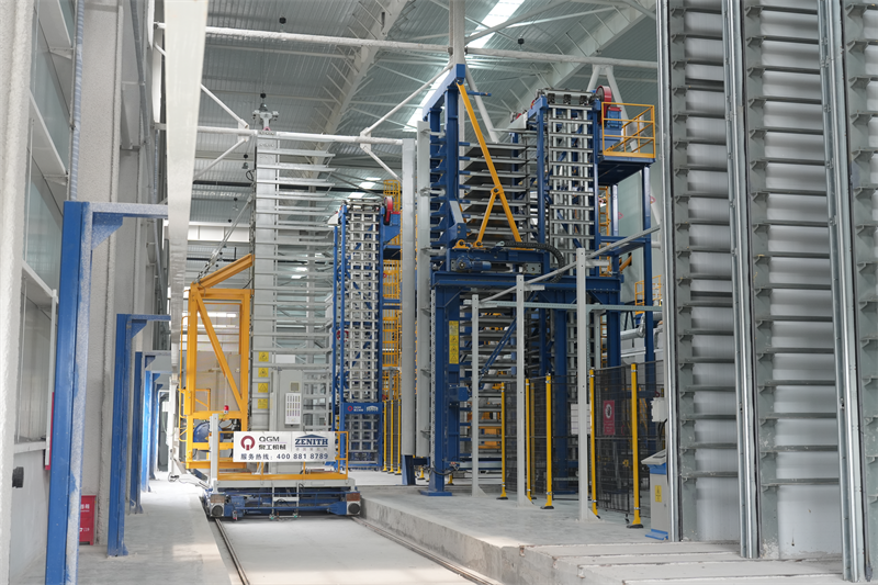 Glacann an líne táirgeachta innealra QGM dearadh uathoibrithe go hiomlán agus tá sé feistithe le trealamh chun cinn mar an córas palletizing servo agus córas gluaisteán máthair-agus-leanbh go hiomlán uathoibríoch arna fhorbairt go neamhspleách ag QGM, ag baint amach uathoibriú próiseas iomlán ó phróiseáil amhábhar go cruachta táirgí críochnaithe. Ina measc, cinntíonn an córas suite ard-chruinneas agus an robot palletizing Chliste táirgeadh cobhsaí agus éifeachtach, ag laghdú tomhaltas foriomlán fuinnimh 25% agus costais saothair 40%.