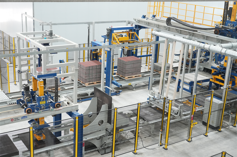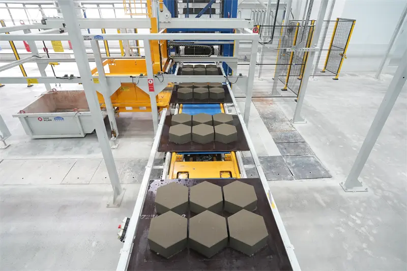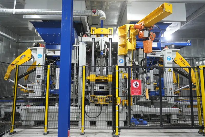 Úsáideann croí-threalamh na líne táirgeachta an meaisín foirmithe bloc ZN1500-2C nua-fhorbartha ag QGM, a chomhtháthaíonn roinnt teicneolaíochtaí paitinnithe. Tá an trealamh feistithe le córas mear-athrú múnla cliste, ar féidir leis aistriú go tapa chun táirgí éagsúlaithe a tháirgeadh mar brící pábhála agus brící tréscaoilteach; Bunaithe ar an ardán Idirlín tionsclaíoch, tuigeann sé monatóireacht fíor-ama agus anailís chliste ar shonraí táirgthe, giorraíonn sé an t-am freagartha rabhaidh teip trealaimh faoi 60%, agus feabhsaíonn sé éifeachtacht oibríochta agus cothabhála go suntasach.