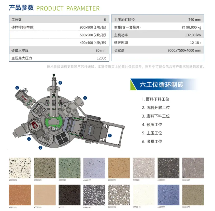 Déanann Preas Static Tábla Rothlach HP-1200T an próiseas déanta brící a scaradh go cruthaitheach i 7 stáisiún, arna socrú i leagan amach ciorclach, ag laghdú an spáis urláir, agus tá limistéar múnlaithe mór agus raon airde múnlaithe, ag cinntiú go gcomhlíontar riachtanais éagsúla na gcustaiméirí maidir le táirgí bloc coincréite cloiche bréige, ag líonadh an bhearna i meaisíní bríce cloiche bréige rothlacha seacht-stáisiún baile. Roghnaíodh a chaighdeán grúpa foirmithe "T/CCMA 0125-2022 Rothlach Il-stáisiún Meaisín Foirmithe Bloc Coincréite Preas Statach" mar cheann de na 100 tionscadal taispeántais caighdeánach grúpa de chuid na hAireachta Tionscail agus Teicneolaíochta Faisnéise in 2023.